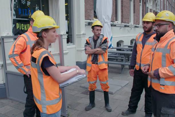 Reportage, Reality. Werfleider Frederique moet in Amsterdam meerdere bouwprojecten tegelijk aansturen. Timmervrouw Maaike is bezig met de afwerking van een nieuwbouwwijk in Katwijk.