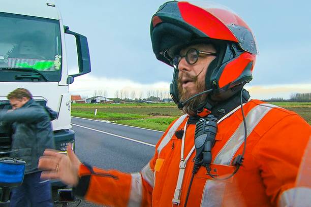 Reportage, Reality. Abdel en Hugo betrappen een bestuurder op bellen achter het stuur en geven hem een rijverbod. Een motorrijder begaat drie overtredingen en krijgt 600 euro boete plus drie weken rijverbod.