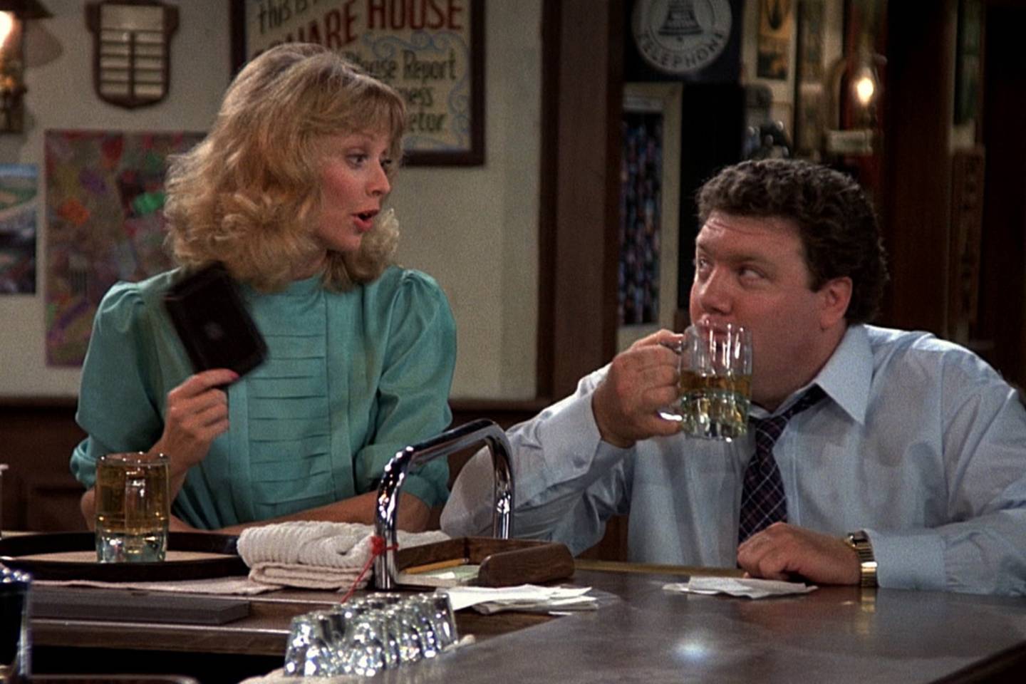Ted Danson (Sam Malone), Rhea Perlman (Carla Tortelli), Shelley Long (Diane Chambers), John Ratzenberger (Cliff Clavin), George Wendt (Norm Peterson), Nicholas Colasanto (Ernie 'Coach' Pantusso)