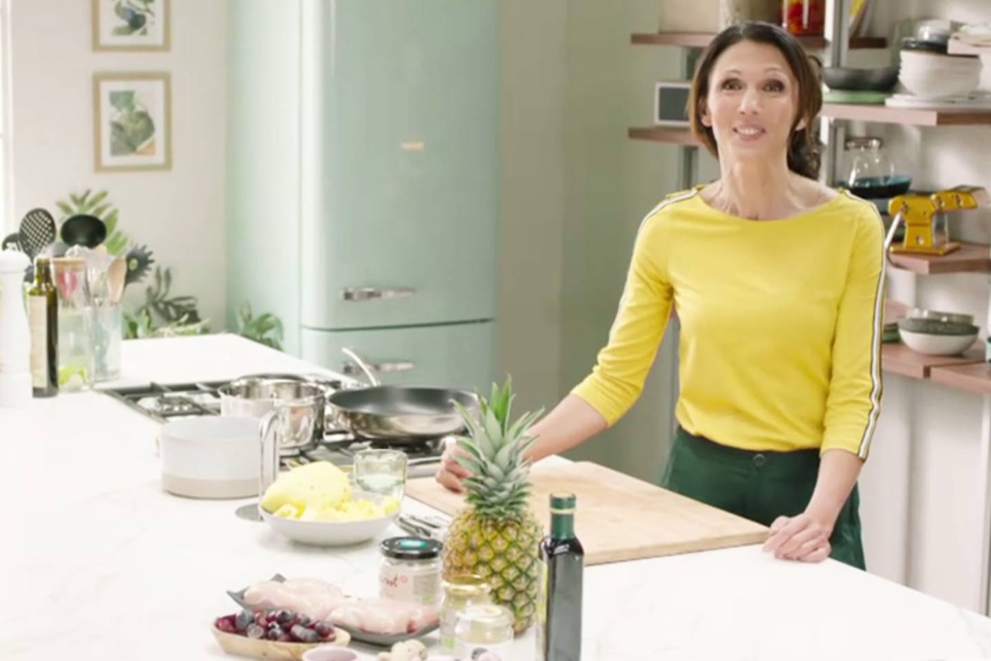Sandra Bekkari bereidt kip in zoetzure saus, geserveerd met zoete aardappel.