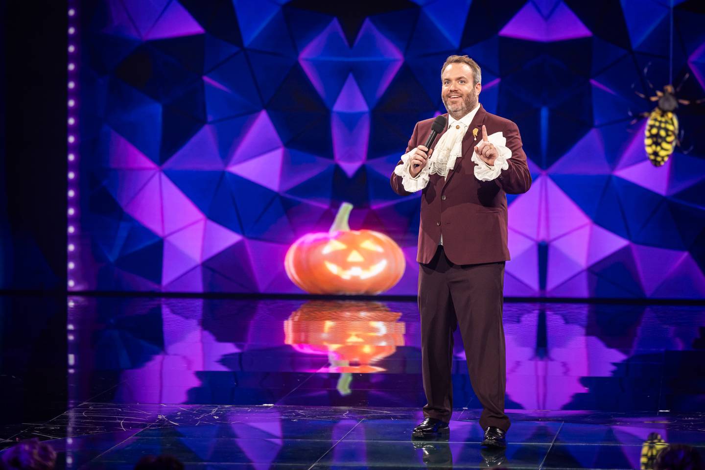 Zangcompetitie (2025) waarin bekende koppen gemaskerd en gehuld in bijzondere kostuums de strijd met elkaar aangaan
