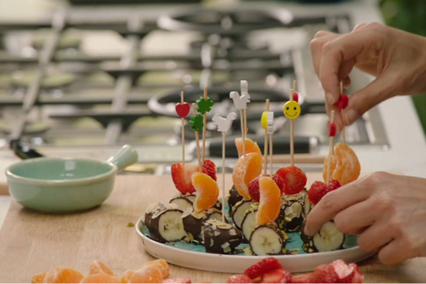 Vandaag een verrassende combinatie op het menu bij Sanra Bekkari: sappig kippengehaktbroodje met frisse postelein en knapperige courgettefrietjes, gevolgd door zoete bananensushi met een rijke chocoladetwist.