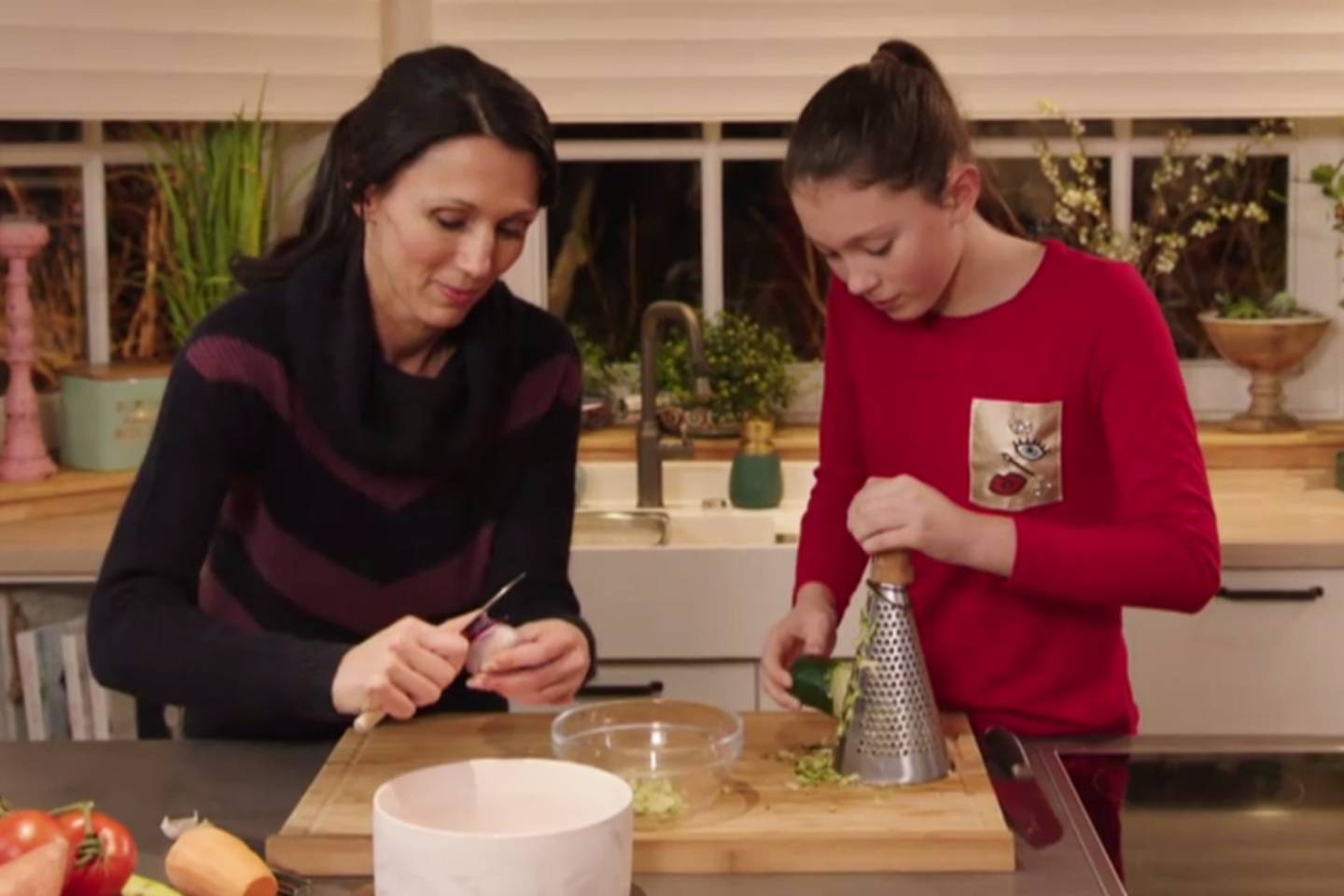 Vandaag staat de tafel van Sandra vol kleur! Ze maakt samen met haar dochter rösti van courgette en zoete aardappel met rode bietenketchup, een frisse geitenkaassalade én rijstpap van zilvervliesrijst.