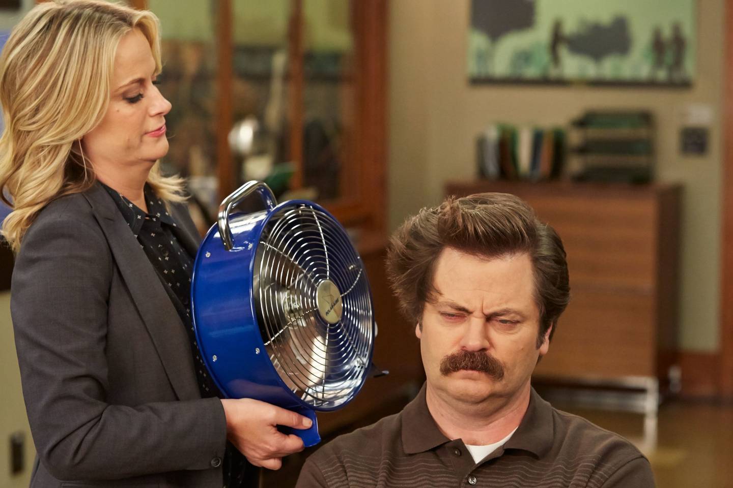 Amy Poehler (Leslie Knope), Nick Offerman (Ron Swanson), Aubrey Plaza (April Ludgate), Chris Pratt (Andy Dwyer), Aziz Ansari (Tom Haverford), Adam Scott (Ben Wyatt)