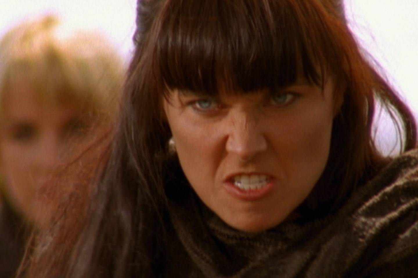 Lucy Lawless in haar doorbraakrol van de machtige krijger Xena, die haar krachten aanwendt om onschuldige mensen te beschermen tegen roofzuchtige bendes.